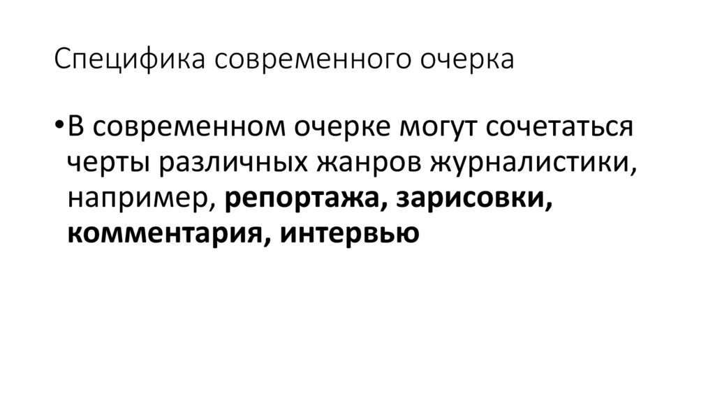 •В современном очерке могут сочетатьсячерты различных жанров журналистики,