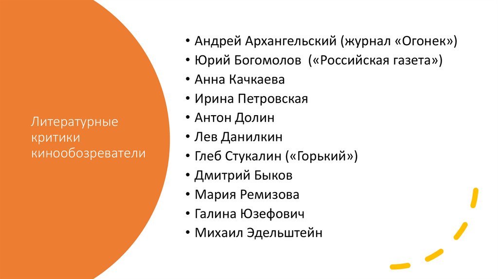 • Андрей Архангельский (журнал «Огонек»)• Юрий Богомолов («Российская газета»)
