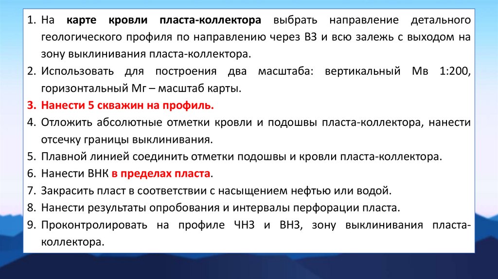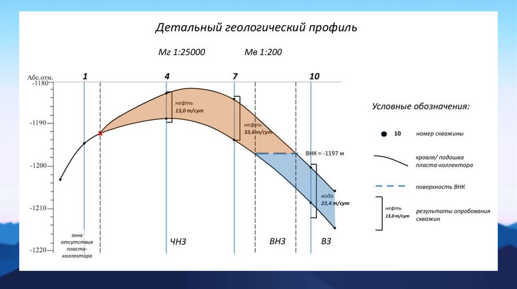 9. Проконтролировать на профиле ЧНЗ и ВНЗ, зону выклинивания пластаколлектора.