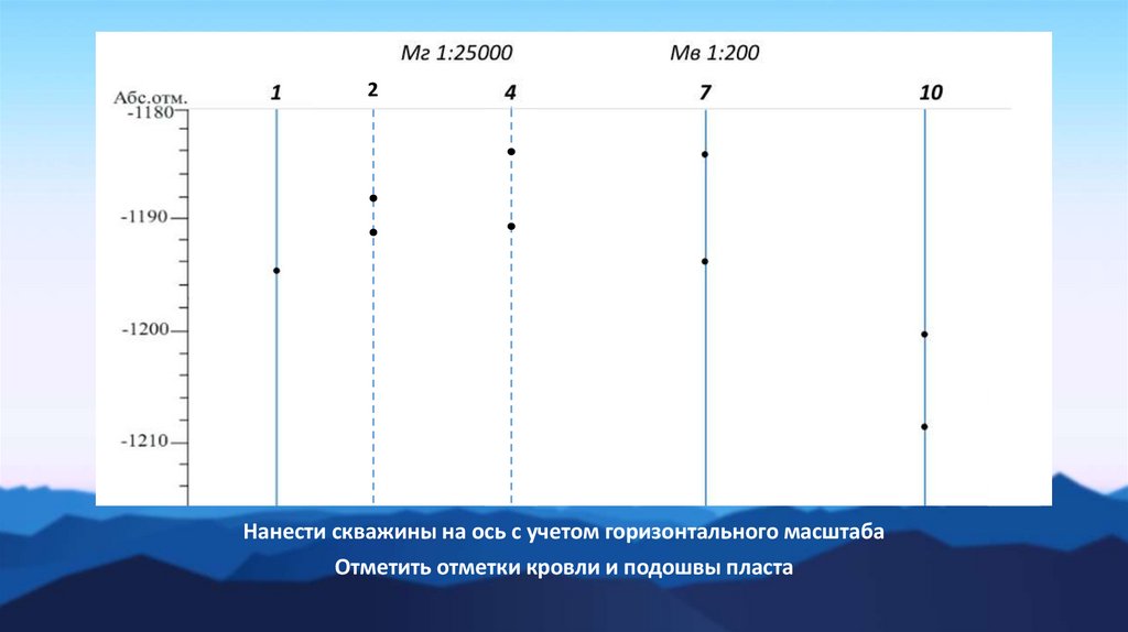 2Нанести скважины на ось с учетом горизонтального масштаба