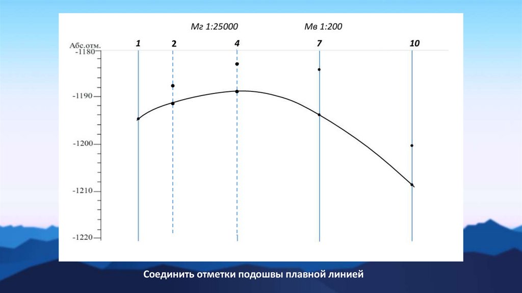 2Соединить отметки подошвы плавной линией
