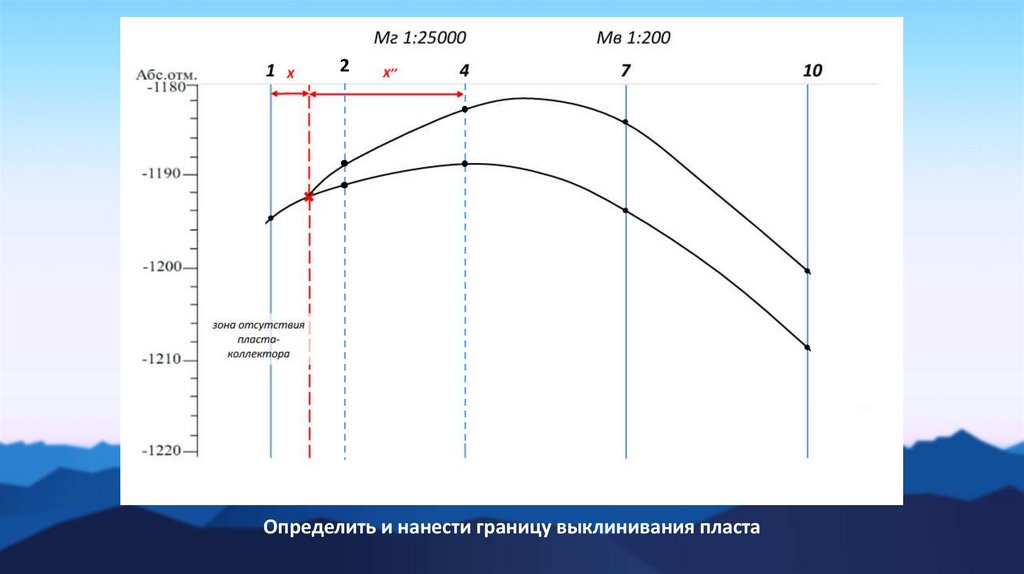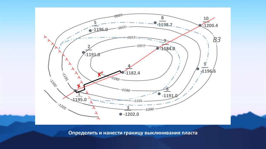 Определить и нанести границу выклинивания пласта