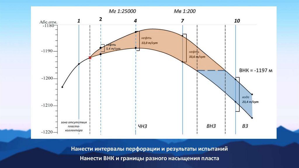 Нанести интервалы перфорации и результаты испытаний
