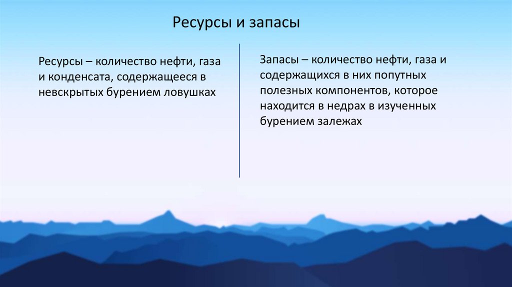 Ресурсы и запасыРесурсы – количество нефти, газа