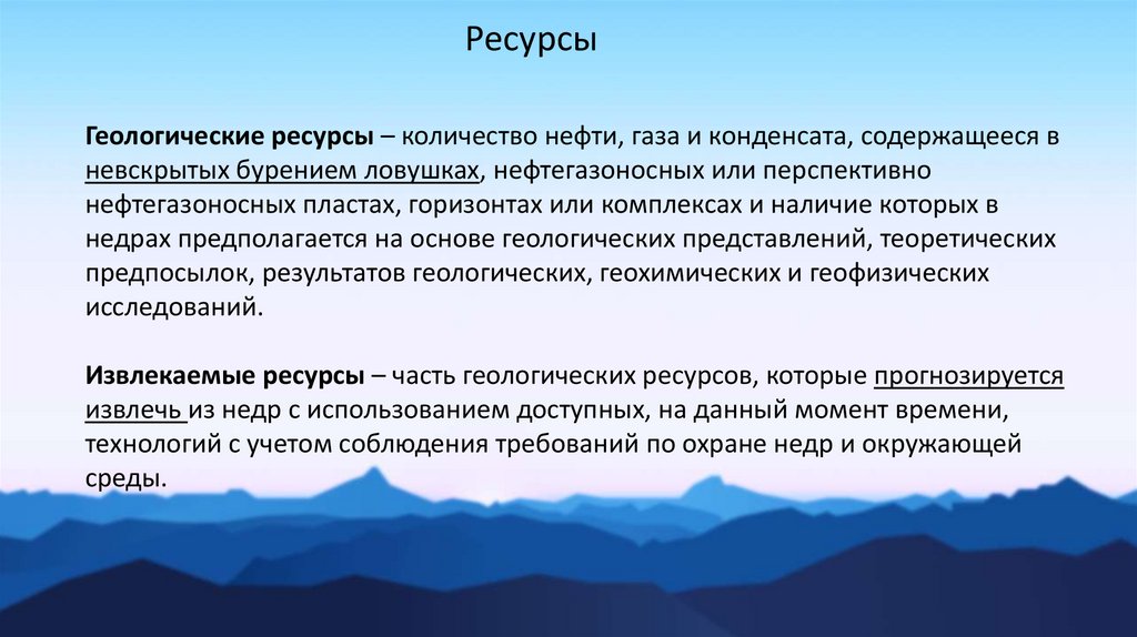 РесурсыГеологические ресурсы – количество нефти, газа и конденсата, содержащееся в