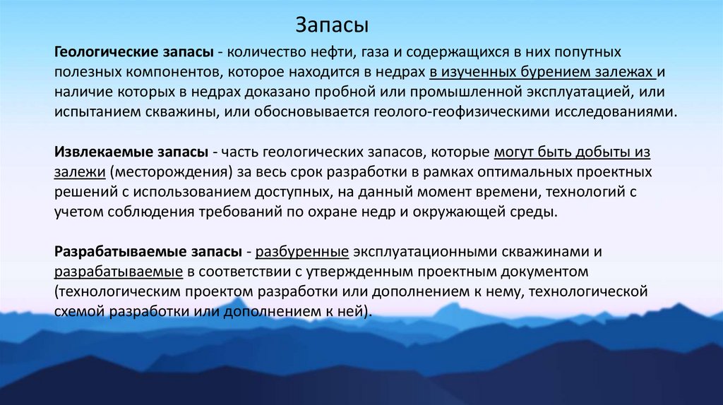 Извлекаемые запасы - часть геологических запасов, которые могут быть добыты из