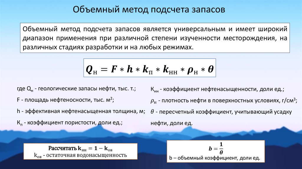 Объемный метод подсчета запасовОбъемный метод подсчета запасов является универсальным и имеет широкий