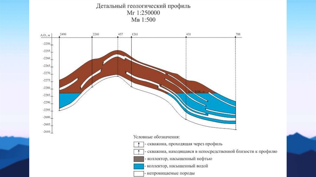 Детальный геологический профиль– графическое изображение залежи в разрезе вертикальной плоскостью по