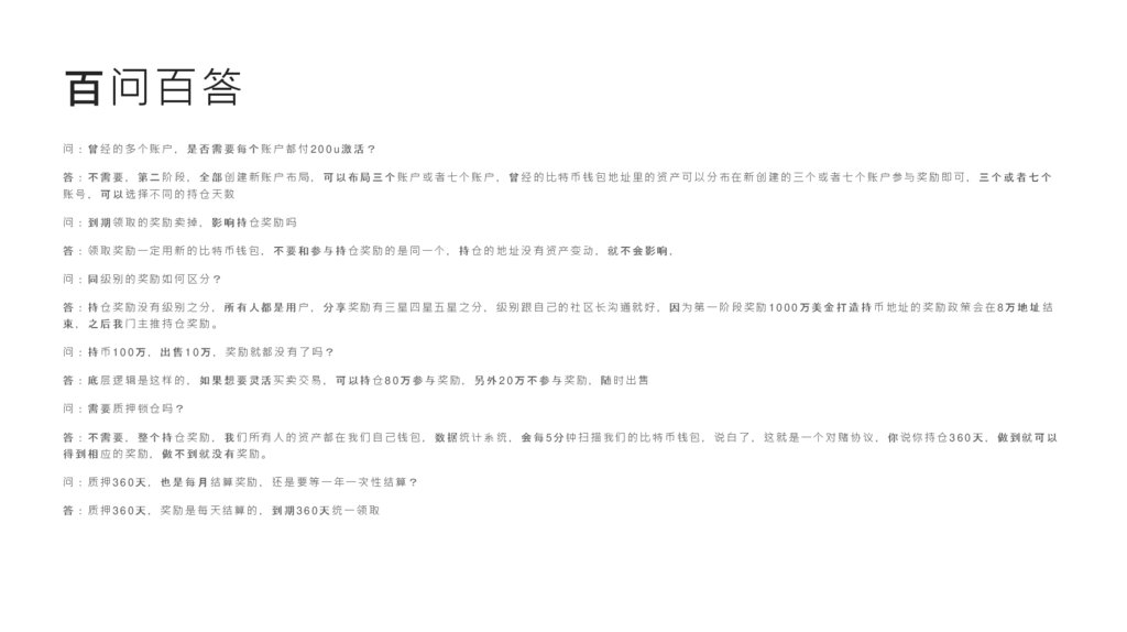 答 不需要 第二阶段 全部创建新账户布局 可以布局三个账户或者七个账户 曾经的比特币钱包地址里的资产可以分布在新创建的三个或者七个账户参与奖励即可 三个或者七个