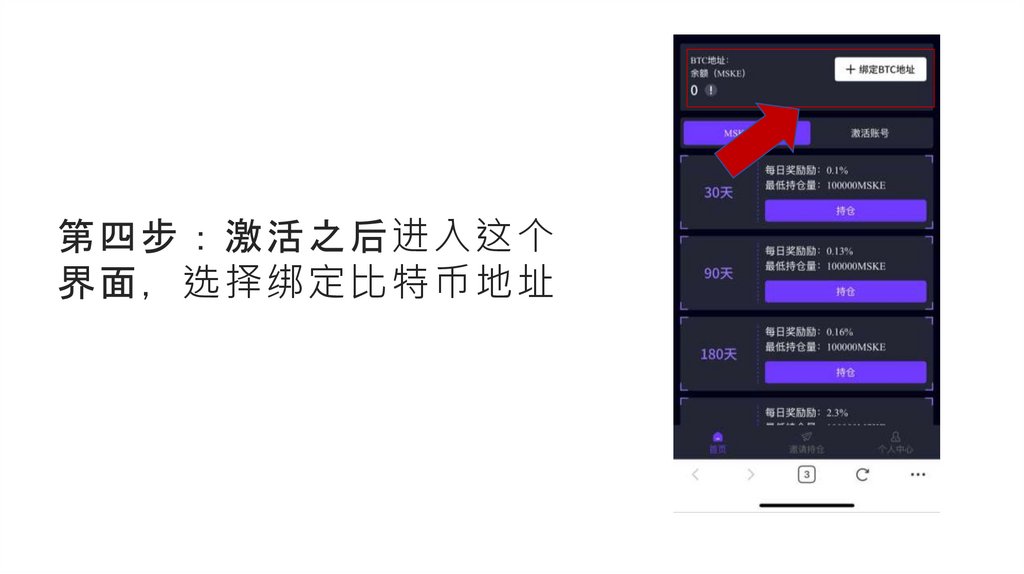 第四步 激活之后进入这个界面 选择绑定比特币地址