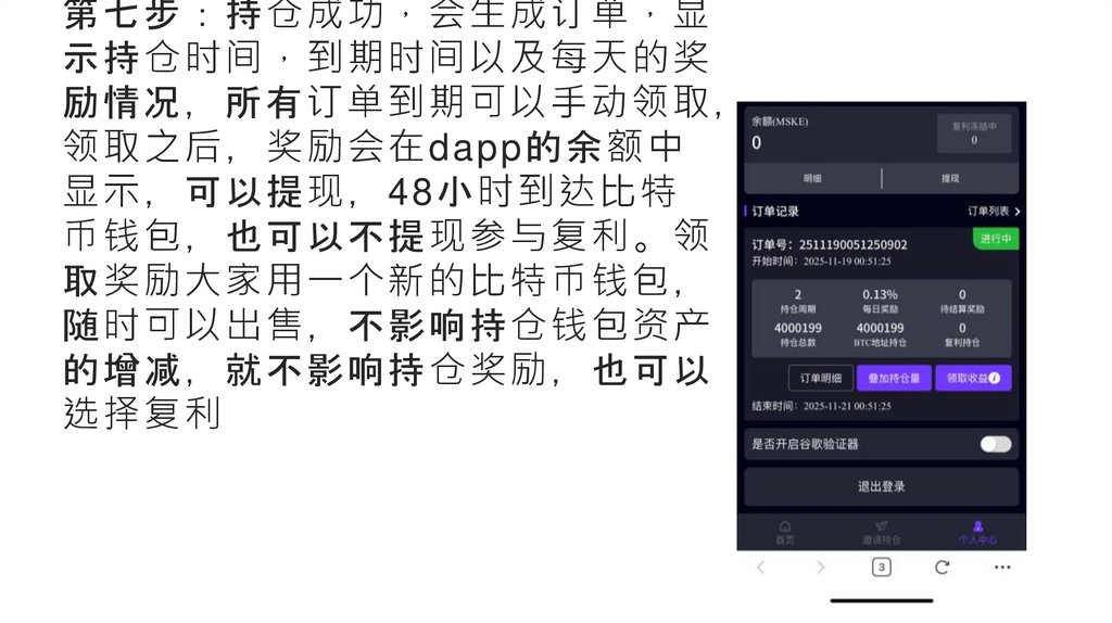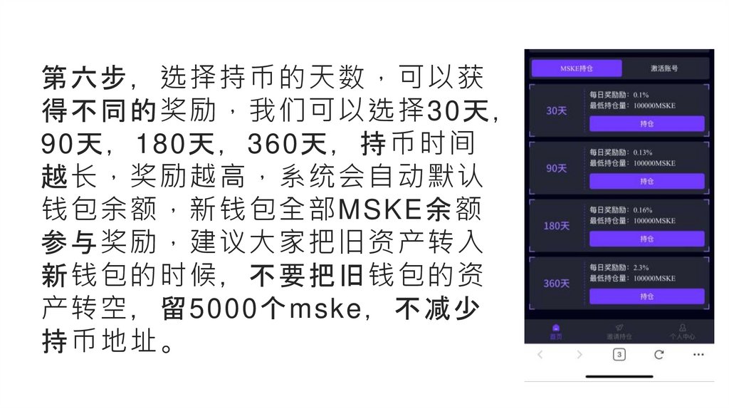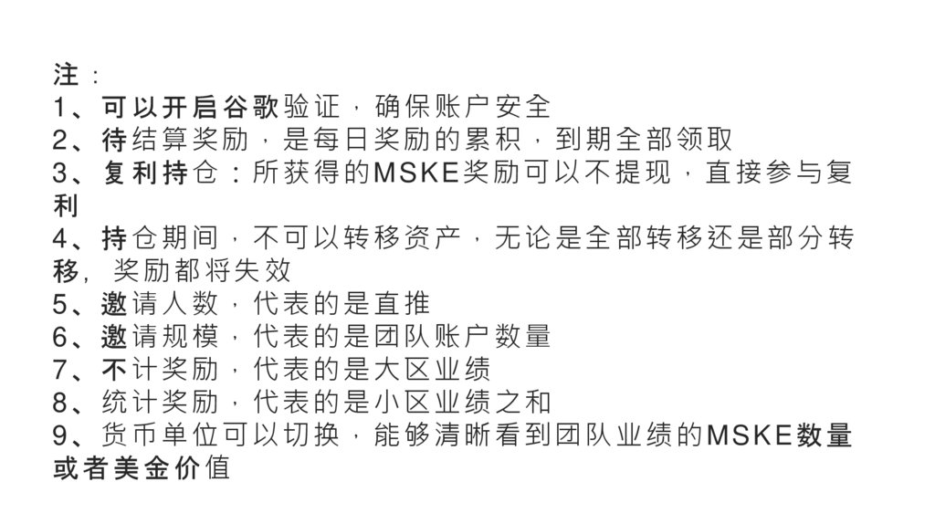 3、复利持仓 所获得的MSKE奖励可以不提现 直接参与复