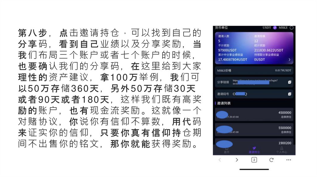 第八步 点击邀请持仓 可以找到自己的分享码 看到自己业绩以及分享奖励 当