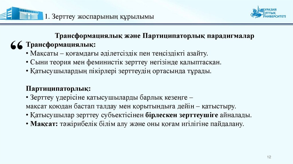 Трансформациялық және партиципаторлық → қоғамды өзгертуге бағытталған