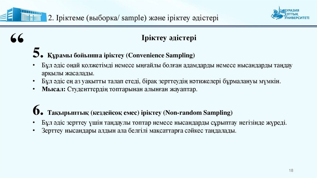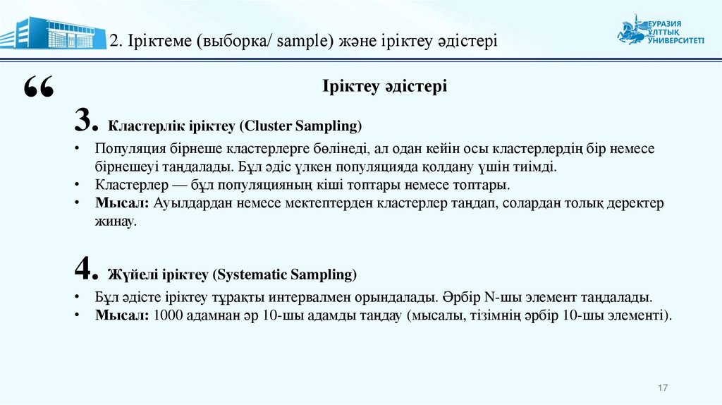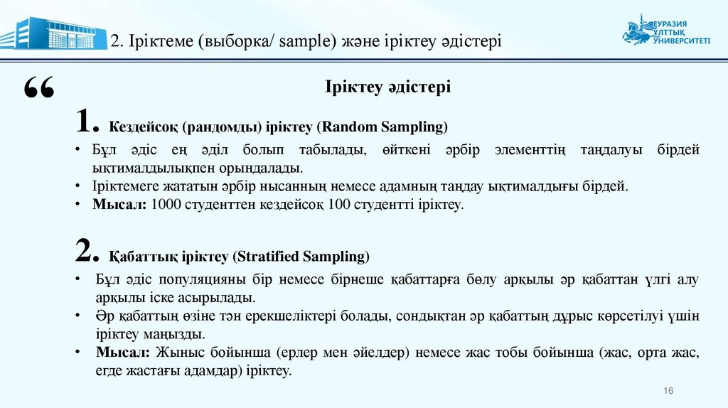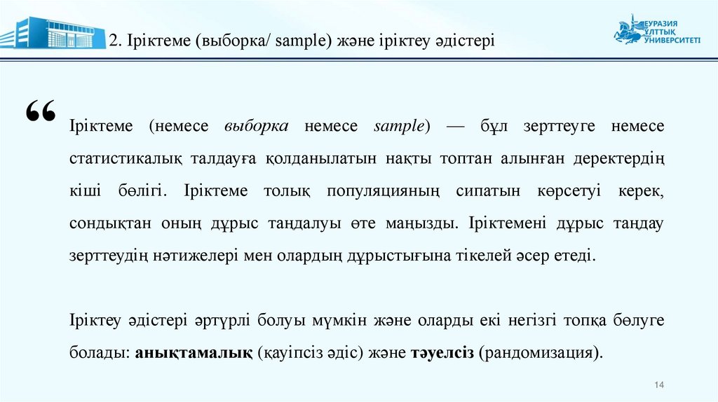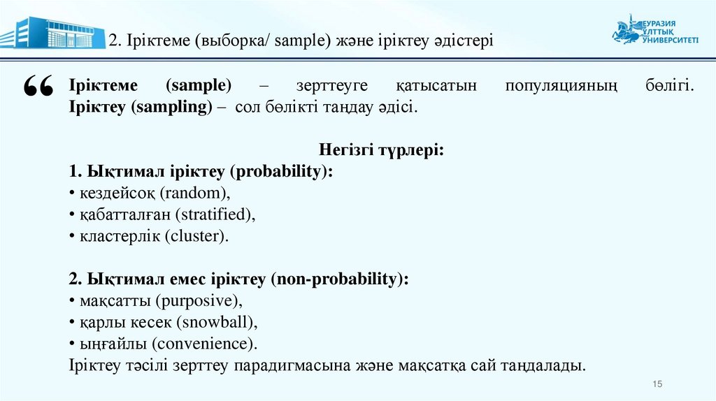 2. Іріктеме (Выборка / sample) және іріктеу әдістері