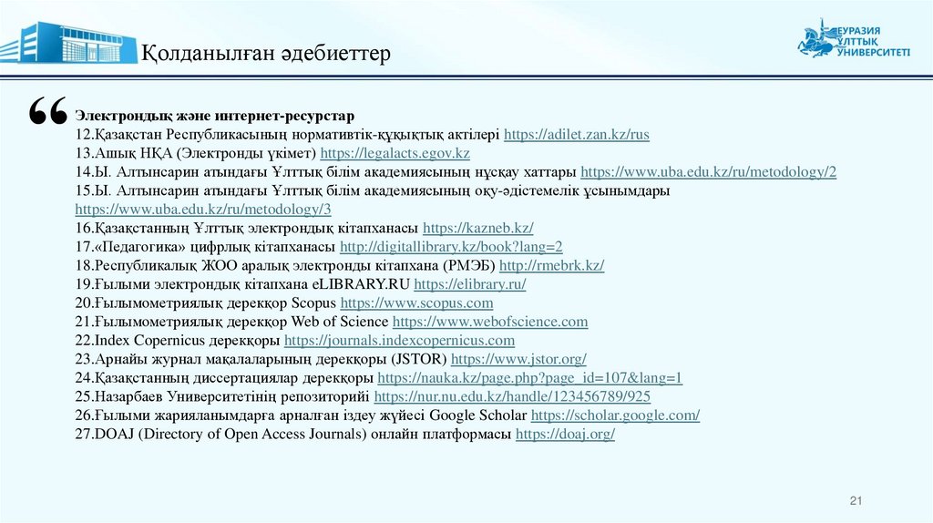 21.Ғылымометриялық дерекқор Web of Science https://www.webofscience.com