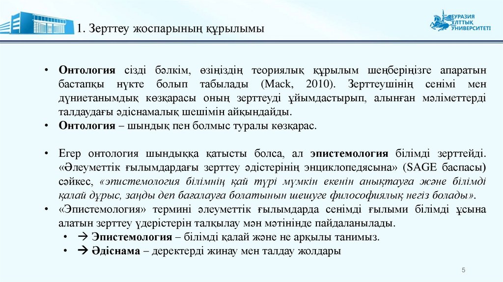 аталады. Зерттеудің онтологиялық, эпистемологиялық және әдіснамалық негіздері зерттеу парадигмасын
