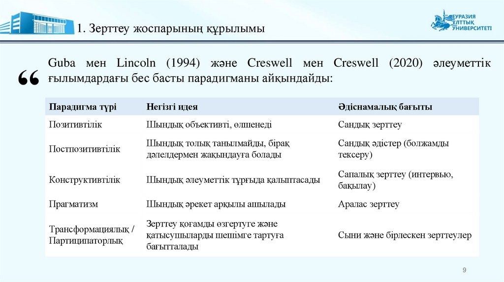 дүниетанымы» деген анықтаманы ұстанамыз (Guba & Lincoln, 1994, 14-б.).