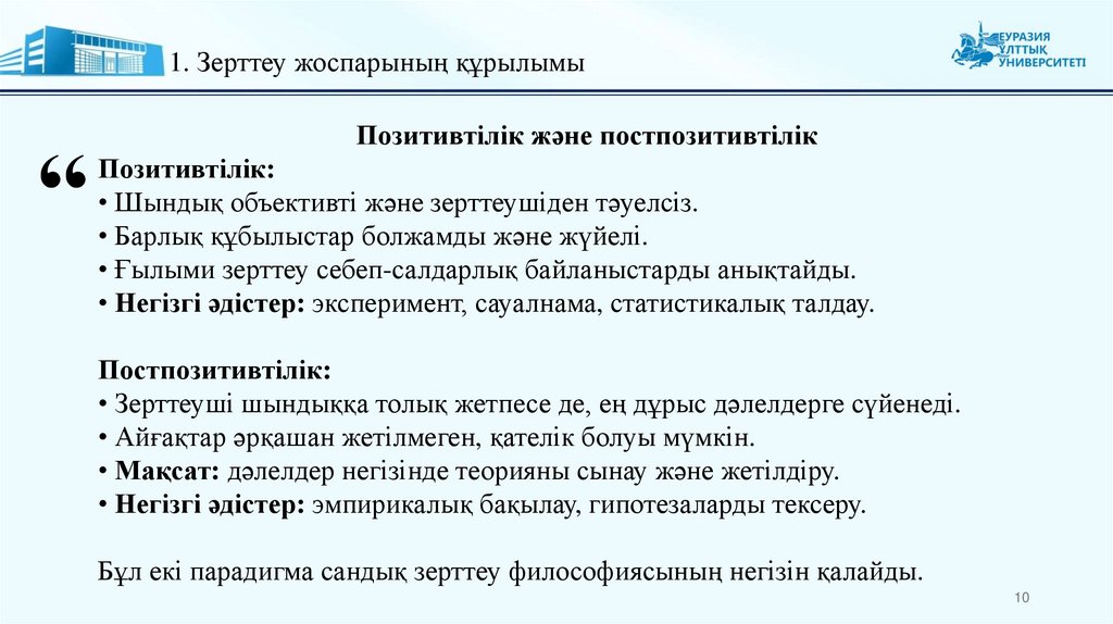 • Зерттеу әдістері — деректерді жинау және талдау құралдары.