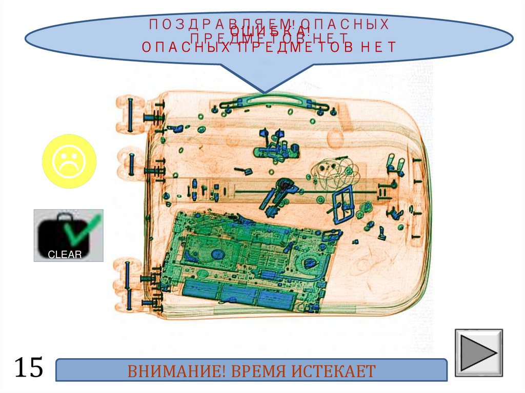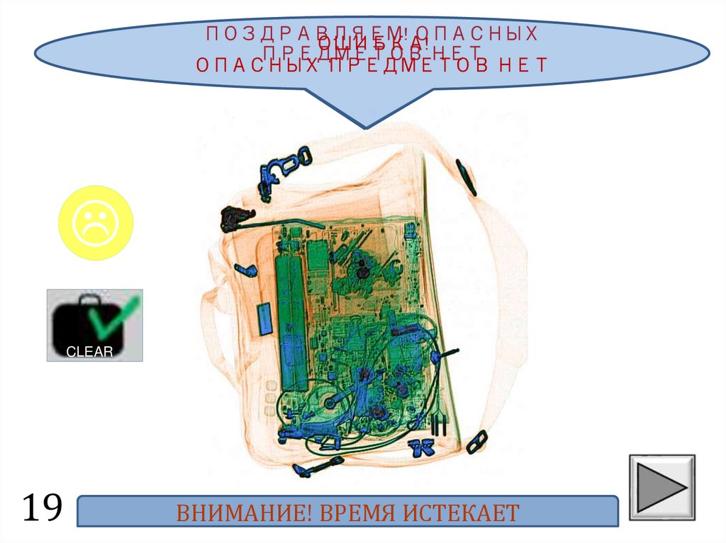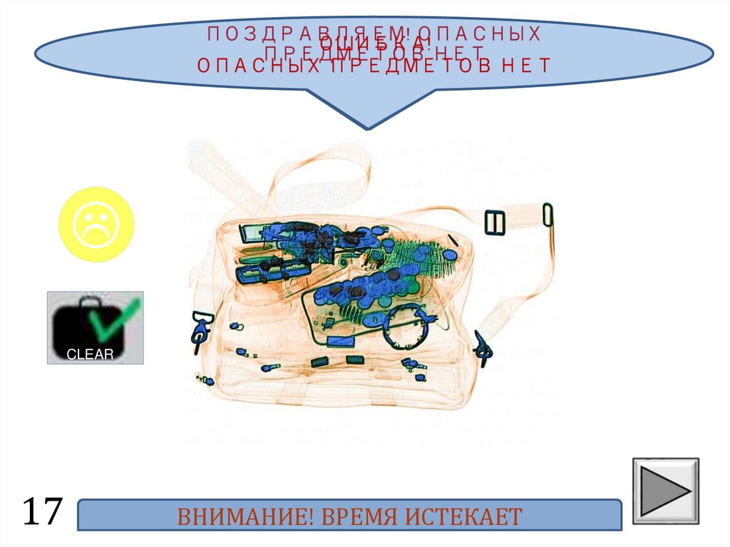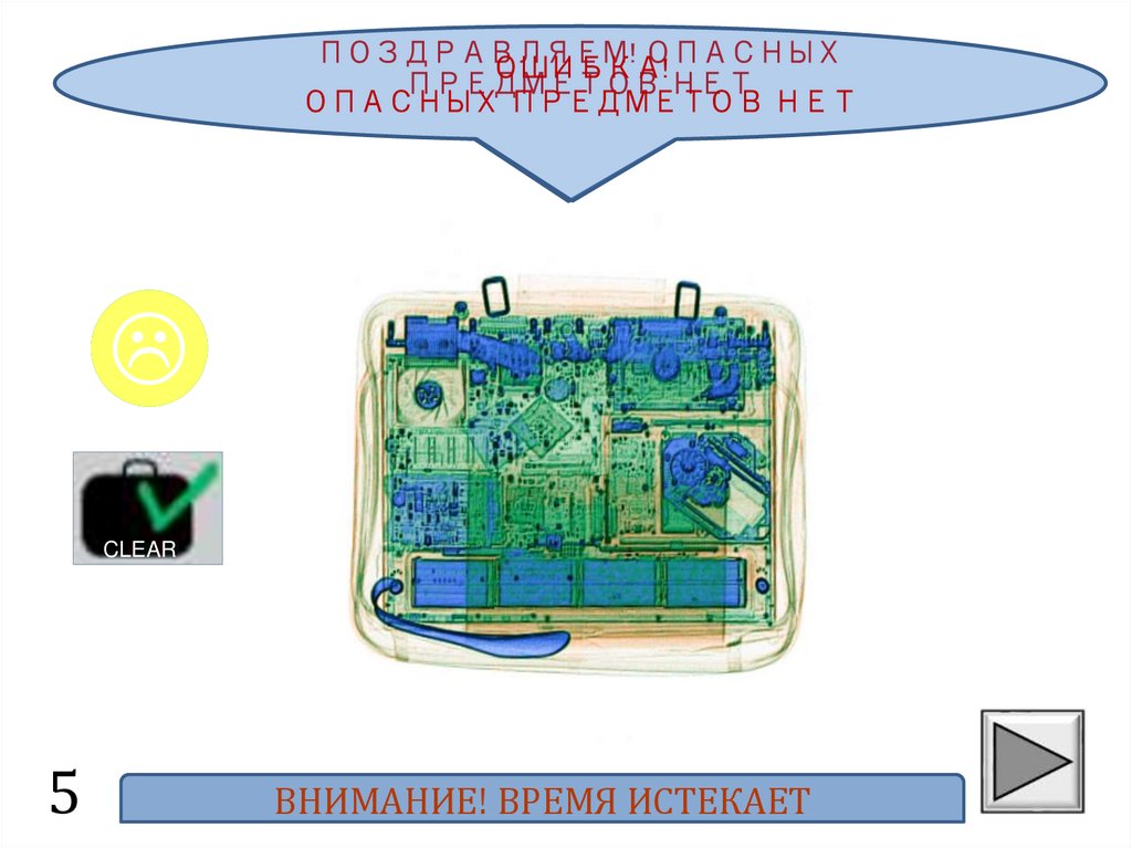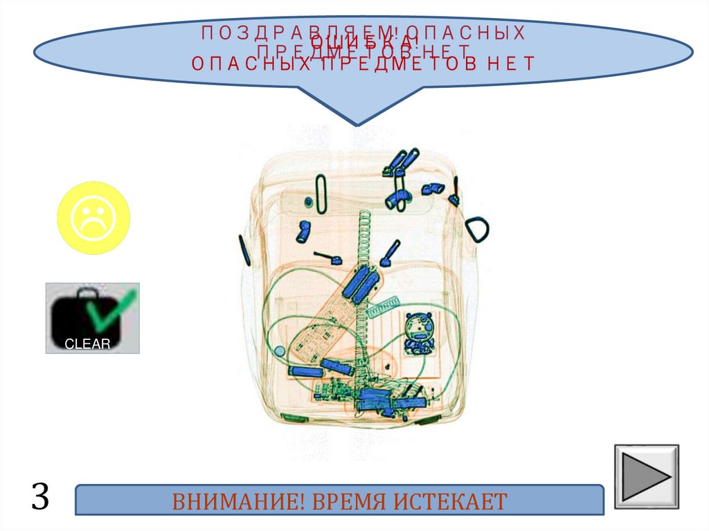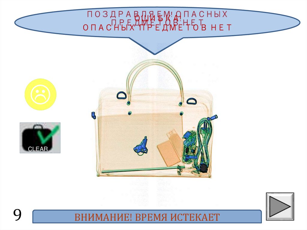 Б). Если вы сделали клик на клавишу «Clear», а опасный предмет в багаже есть.