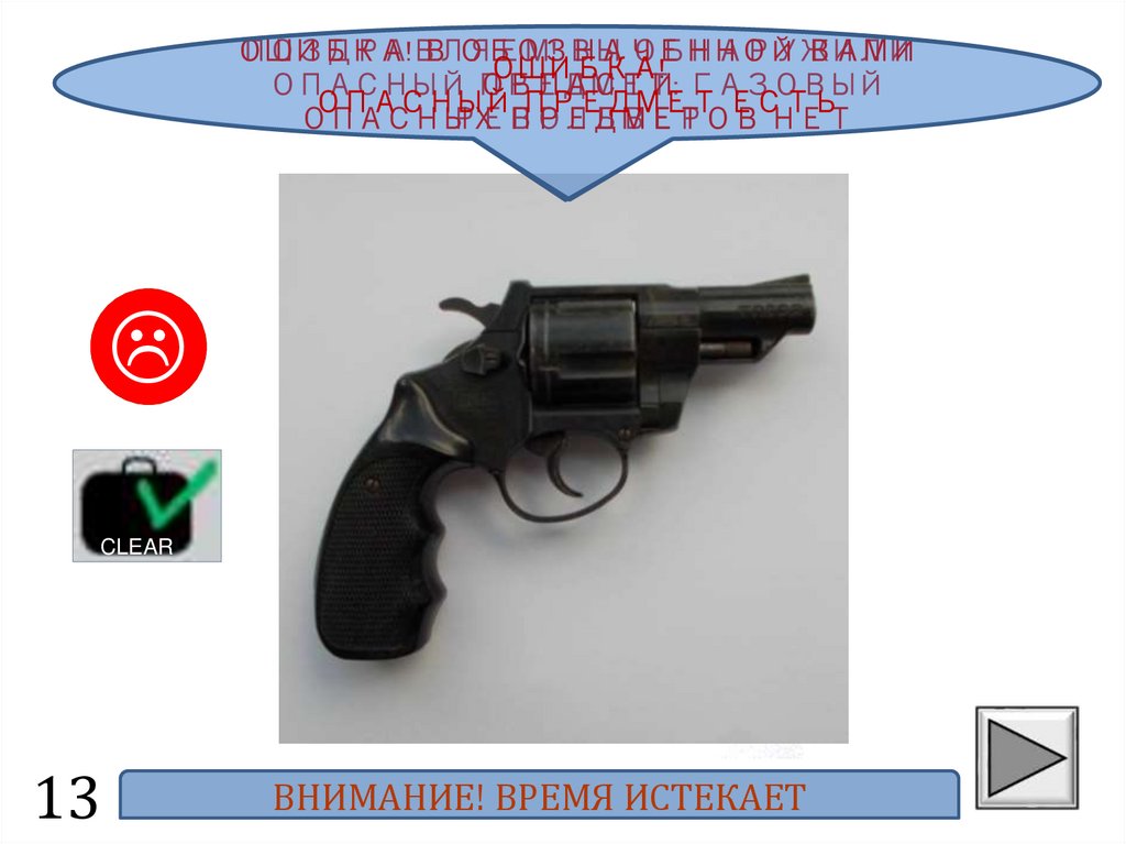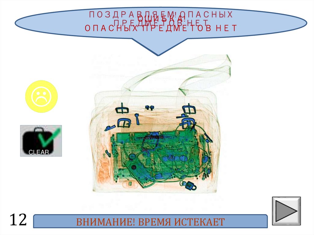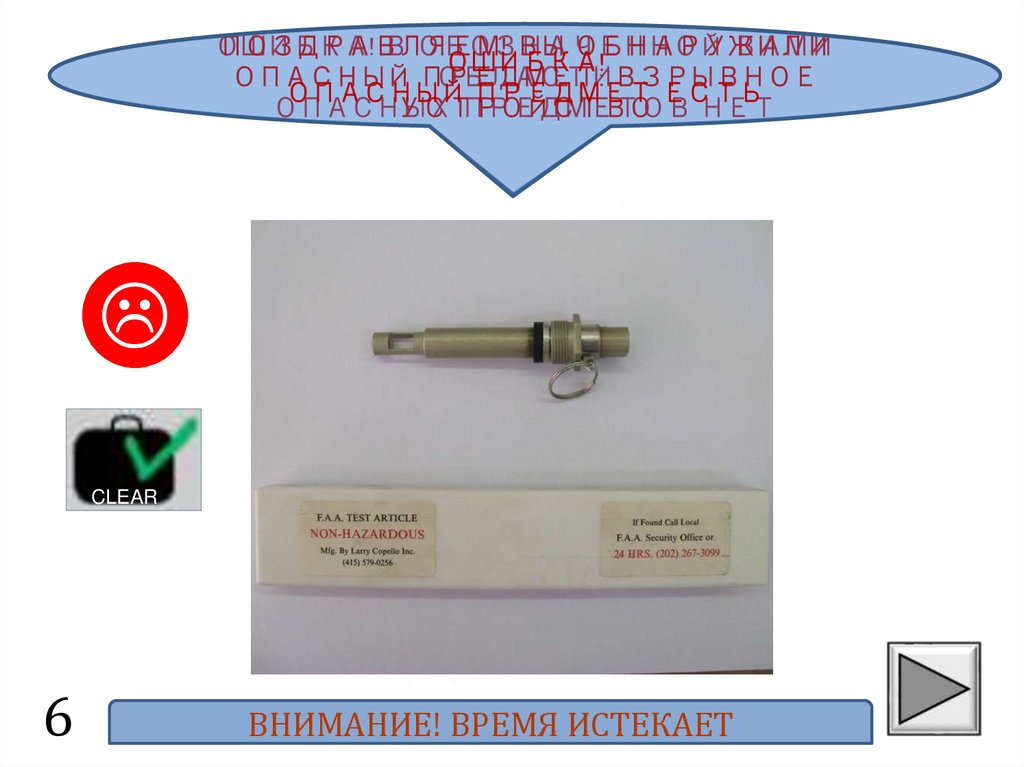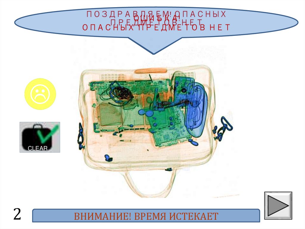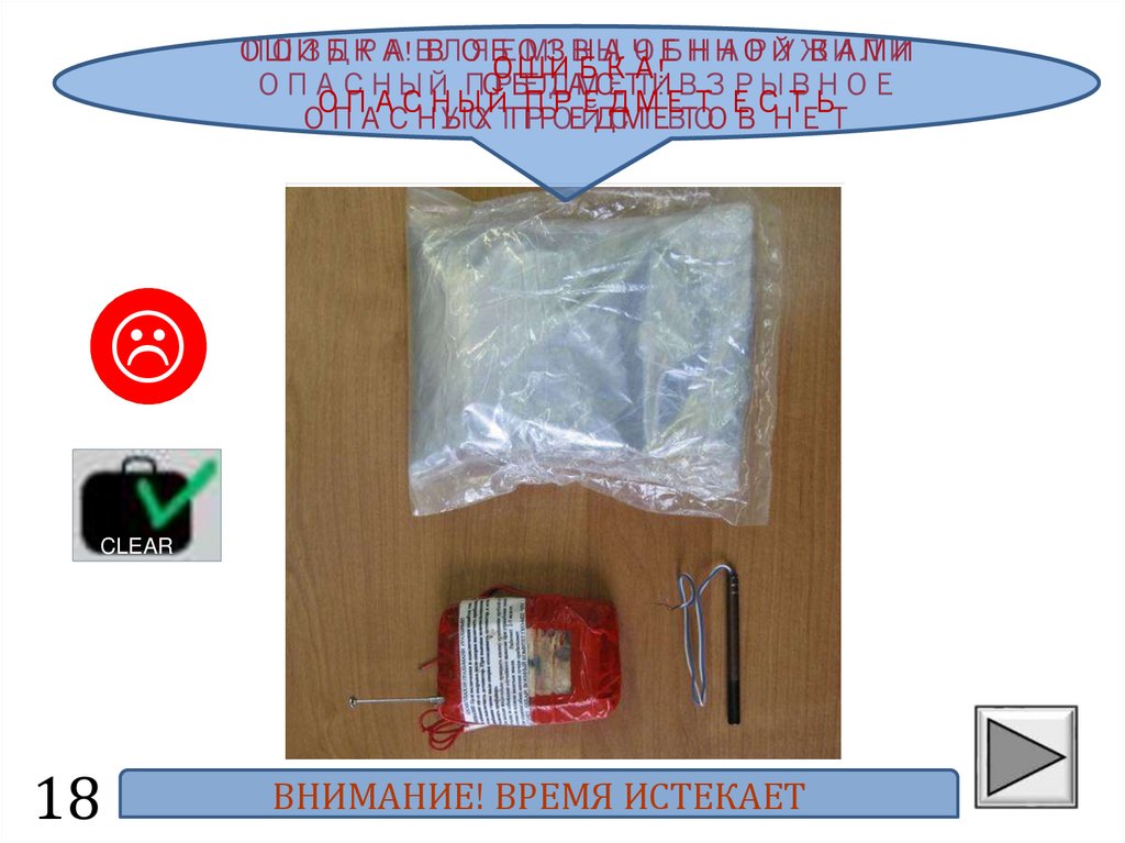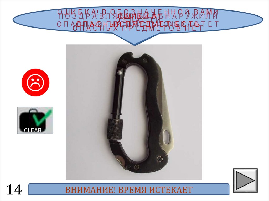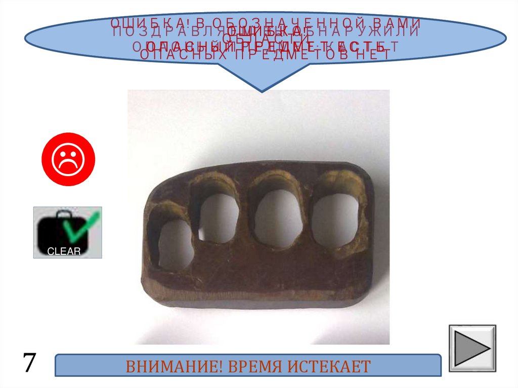 Б). Если вы сделали клик на клавишу «Clear», а опасный предмет в багаже есть.
