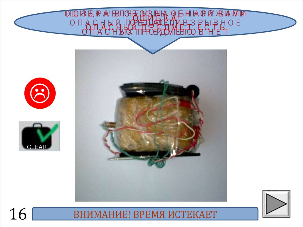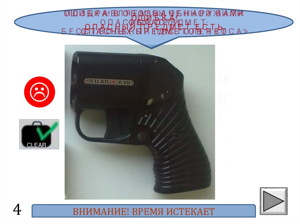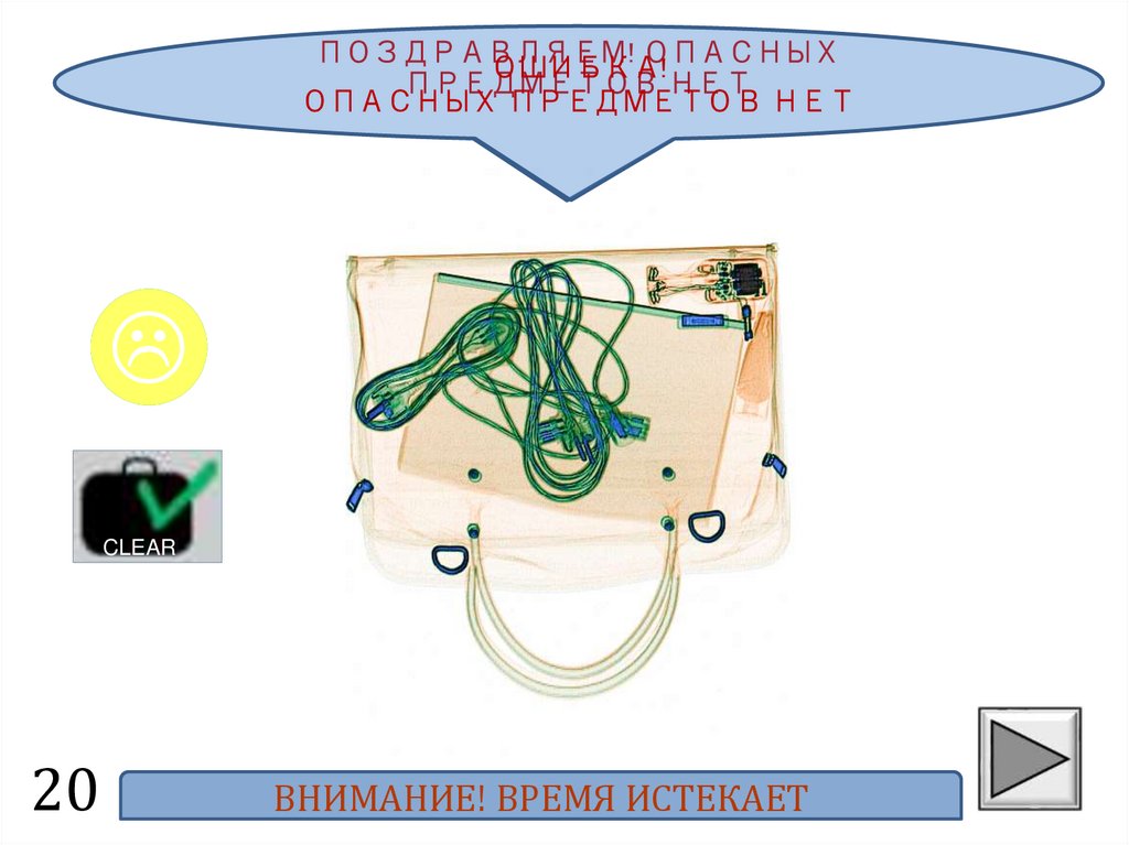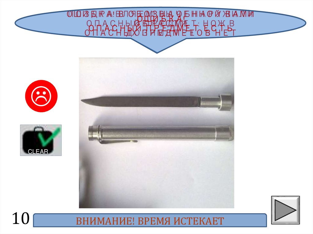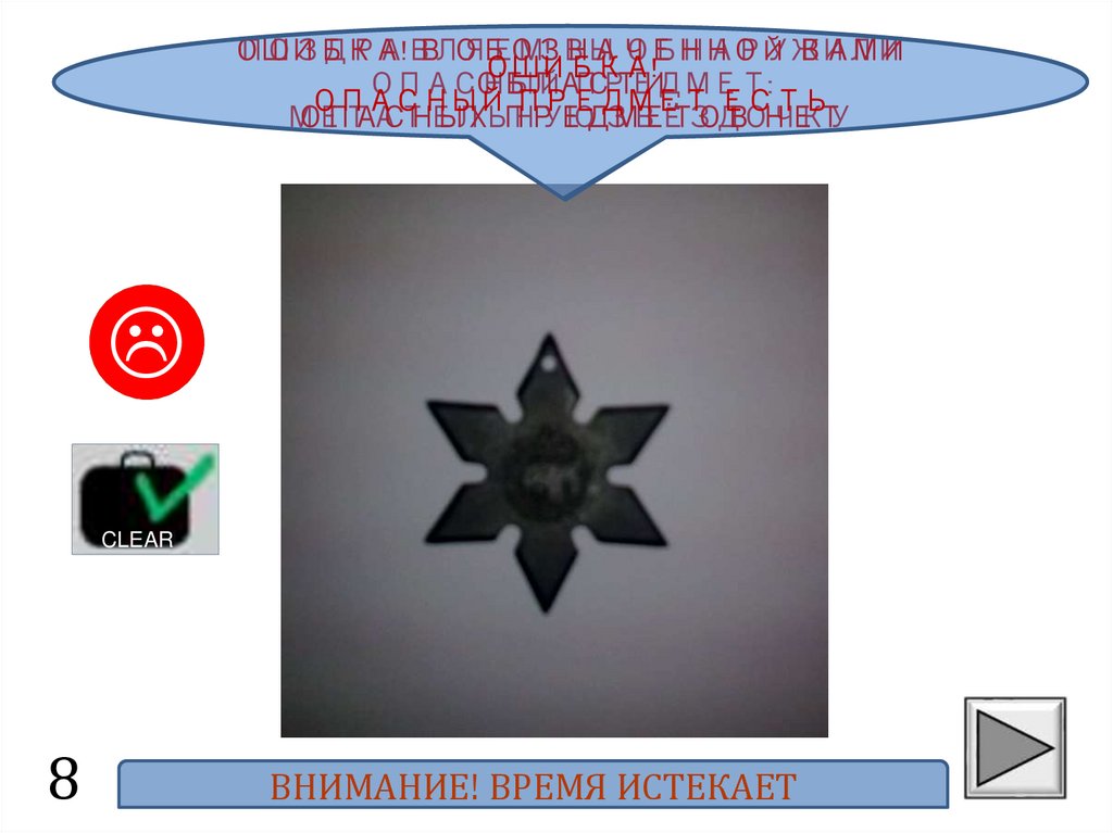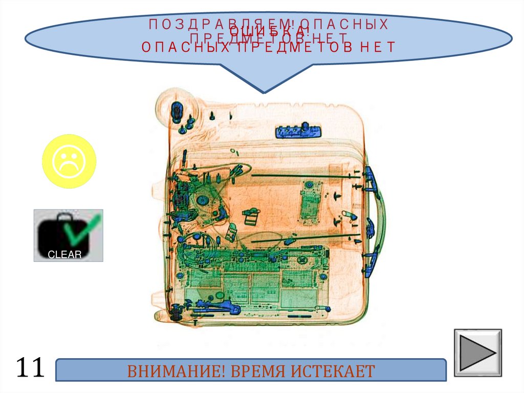Б). Если вы сделали клик на клавишу «Clear», а опасный предмет в багаже есть.