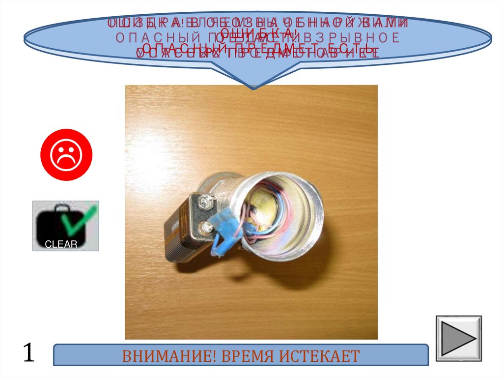 должны обнаружить опасный предмет, навести на него курсор и кликнуть
