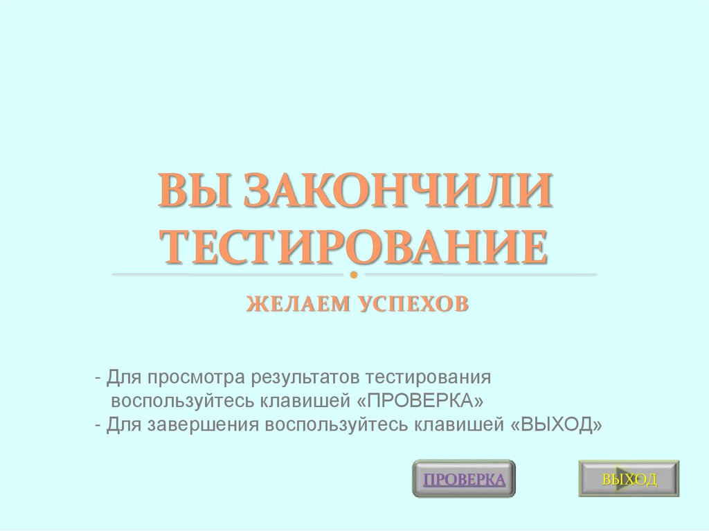 23. ВЫ ЗАКОНЧИЛИ ТЕСТИРОВАНИЕ