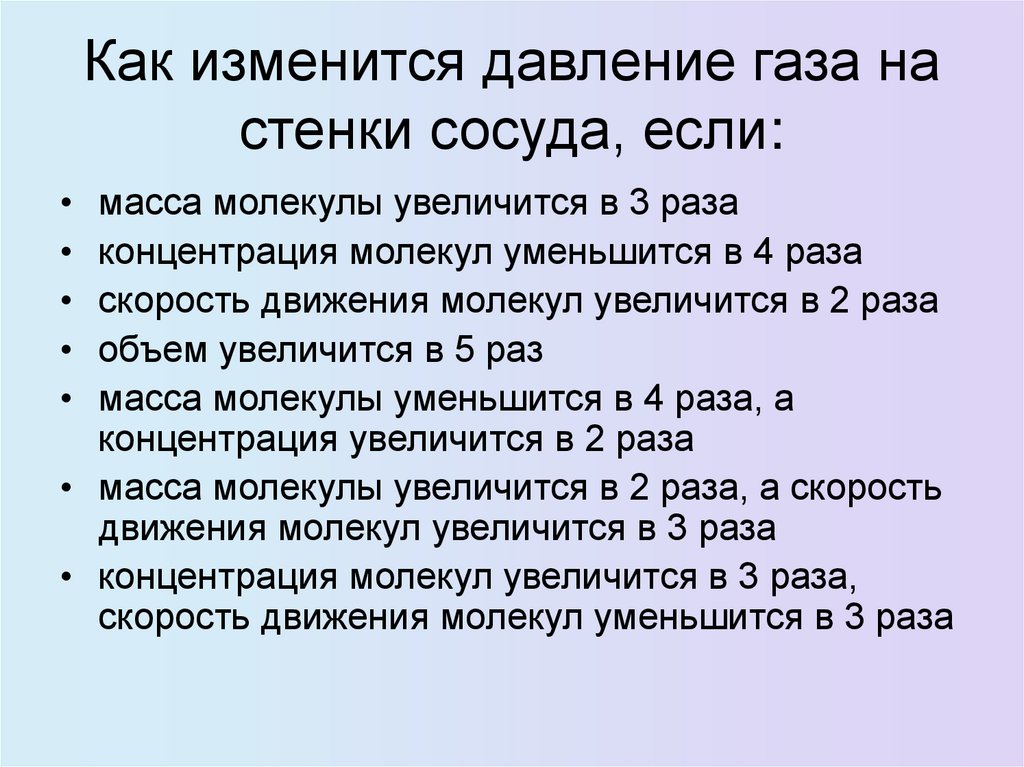 • масса молекулы увеличится в 3 раза• концентрация молекул уменьшится в 4 раза