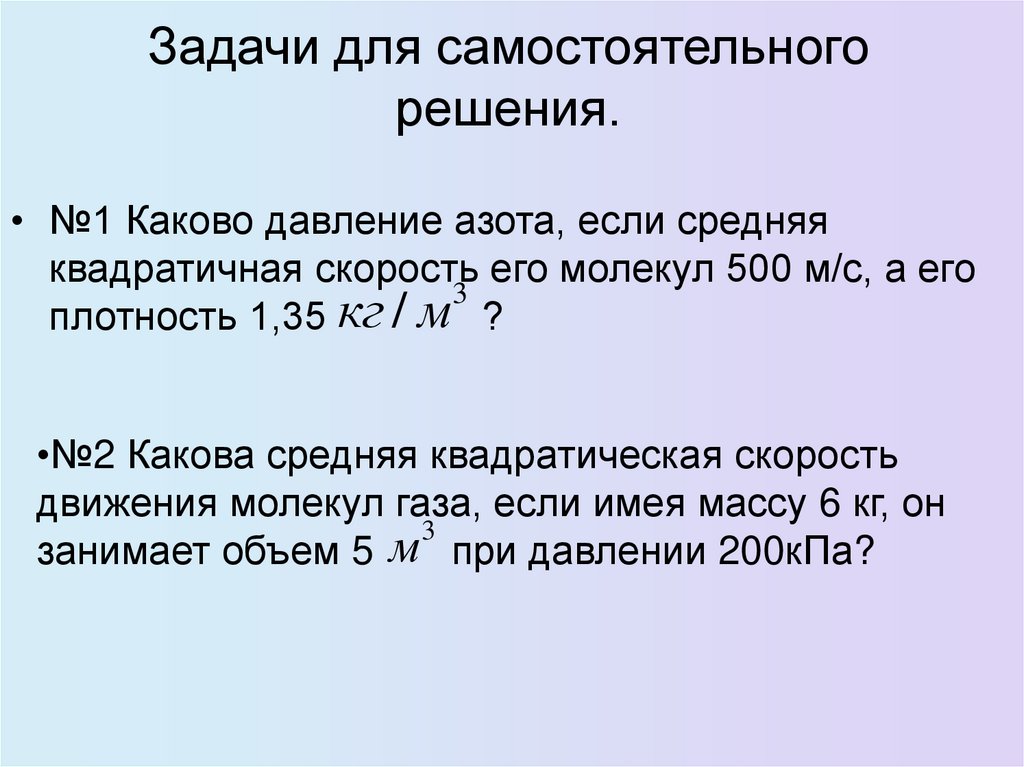 • №1 Каково давление азота, если средняяквадратичная скорость его молекул 500 м/с, а его