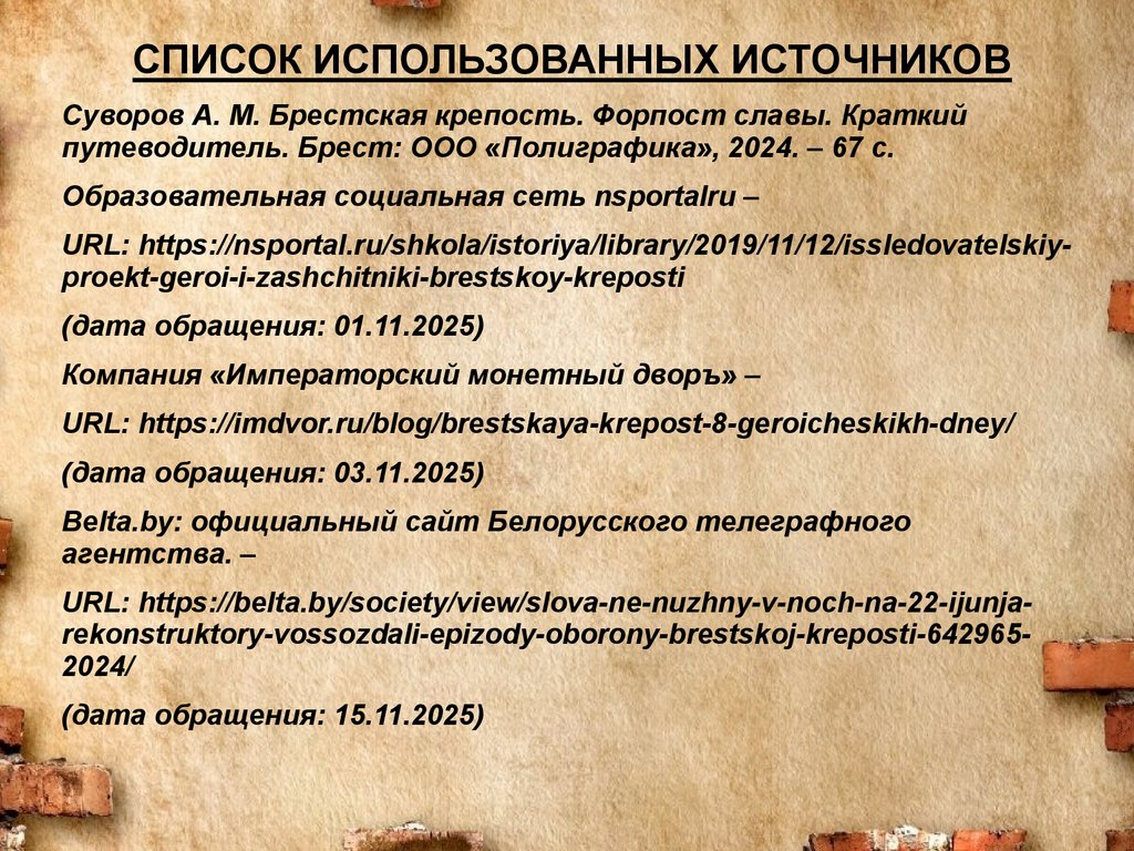 URL: https://nsportal.ru/shkola/istoriya/library/2019/11/12/issledovatelskiyproekt-geroi-i-zashchitniki-brestskoy-kreposti