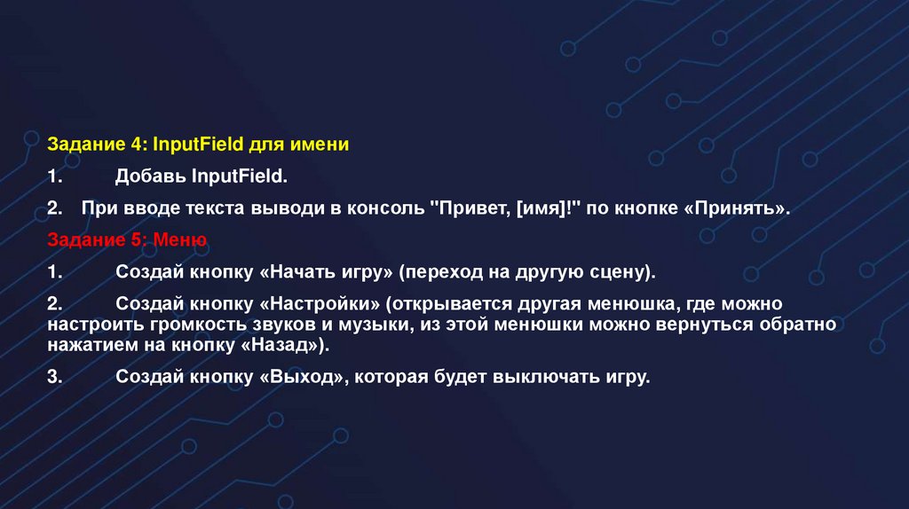 Создай кнопку «Начать игру» (переход на другую сцену).