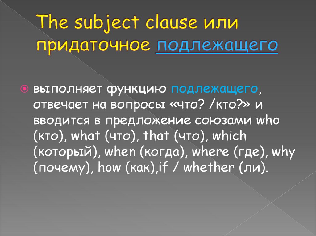 2. The subject clause или придаточное подлежащего