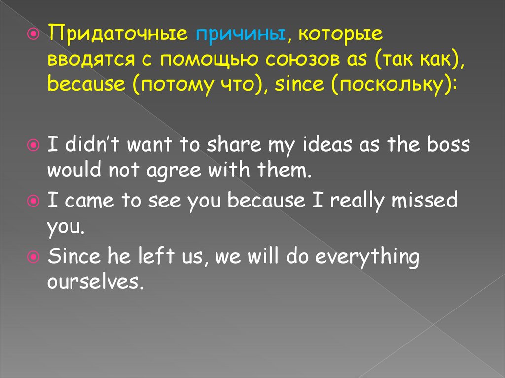 Придаточные причины, которыевводятся с помощью союзов as (так как),