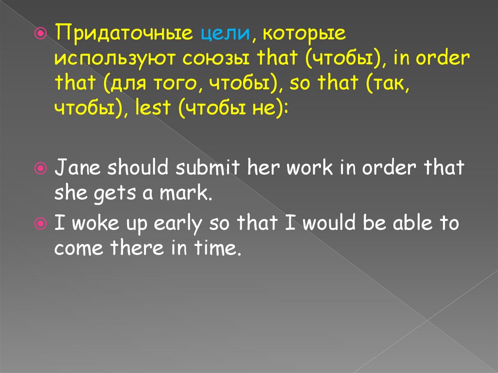Придаточные цели, которыеиспользуют союзы that (чтобы), in order