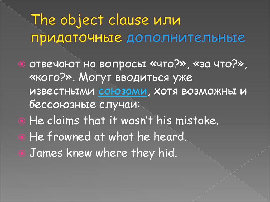 5. The object clause или придаточные дополнительные