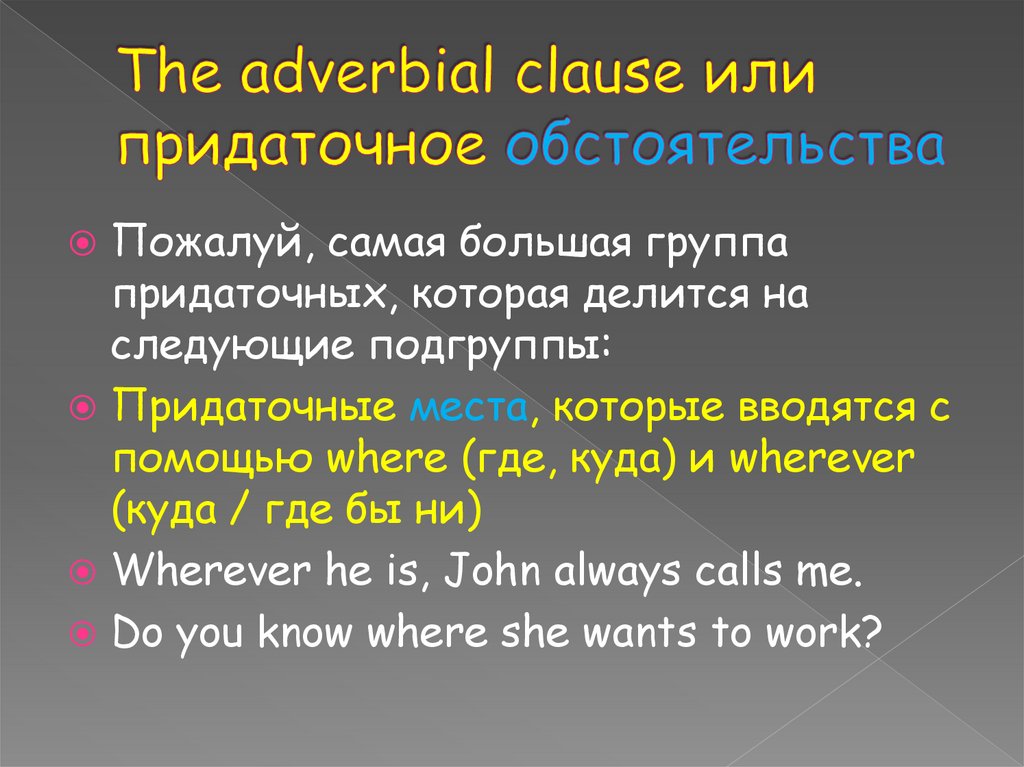 9. The adverbial clause или придаточное обстоятельства