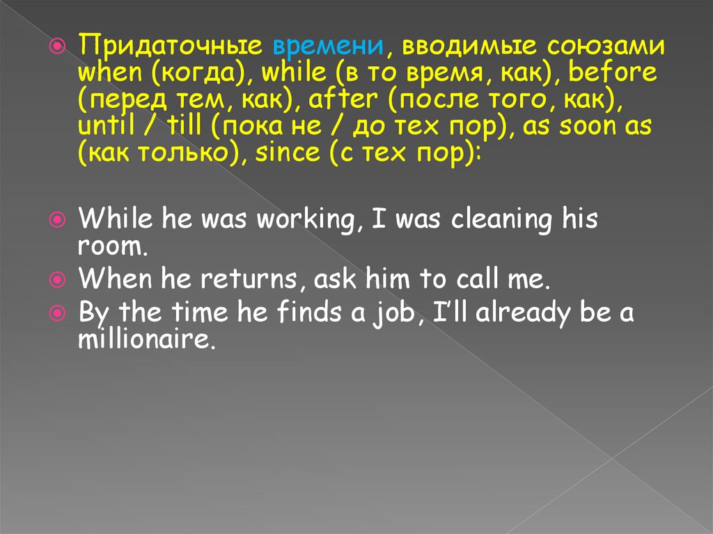 Придаточные времени, вводимые союзамиwhen (когда), while (в то время, как), before