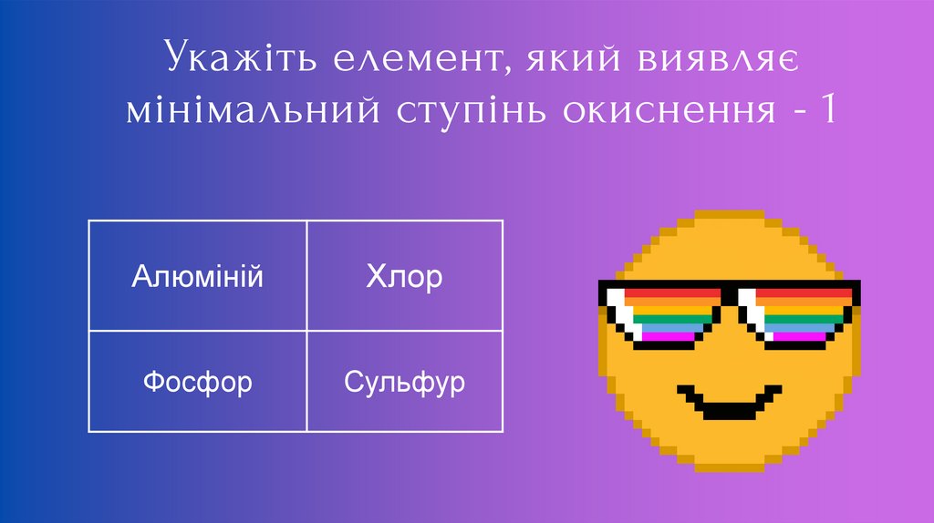 Укажіть елемент, який виявляємінімальний ступінь окиснення - 1