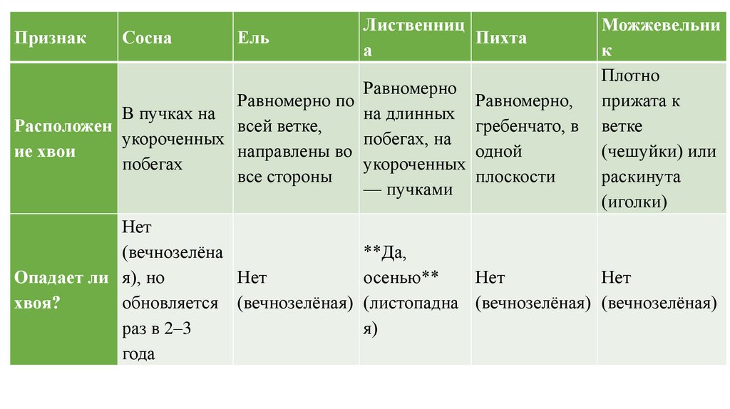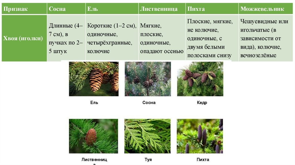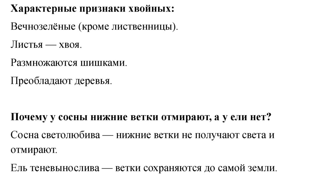 Характерные признаки хвойных:Вечнозелёные (кроме лиственницы).