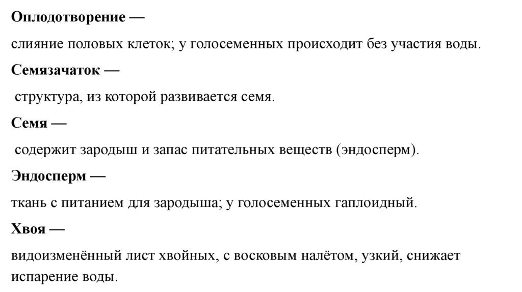 Голосеменные — шпаргалка для ВПРКлючевые термины