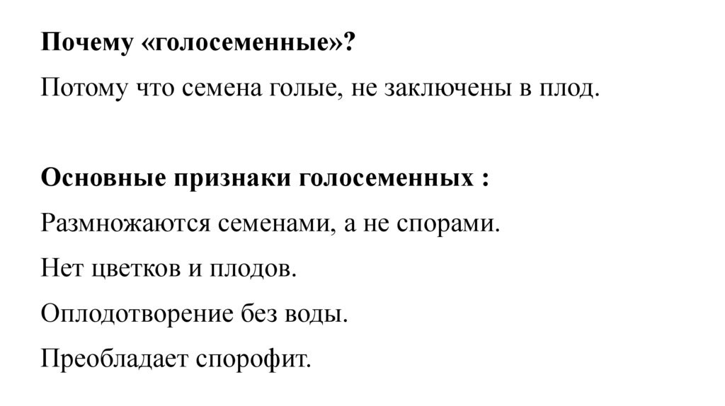 Почему «голосеменные»?Потому что семена голые, не заключены в плод.