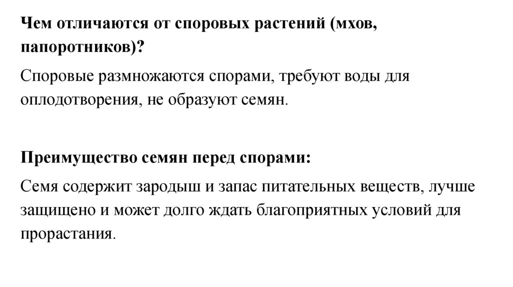Чем отличаются от споровых растений (мхов,папоротников)?