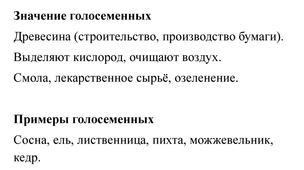 Значение голосеменныхДревесина (строительство, производство бумаги).