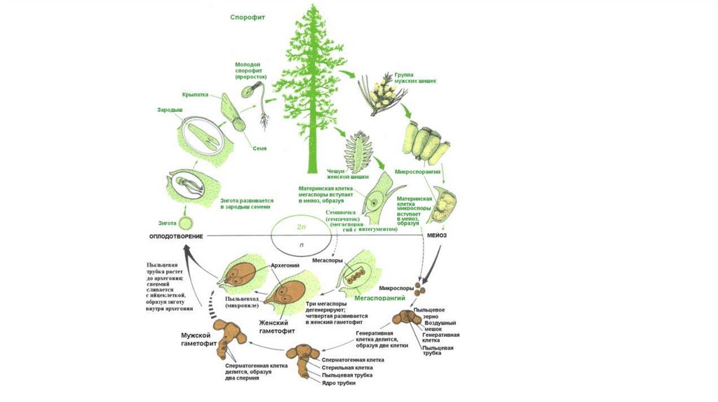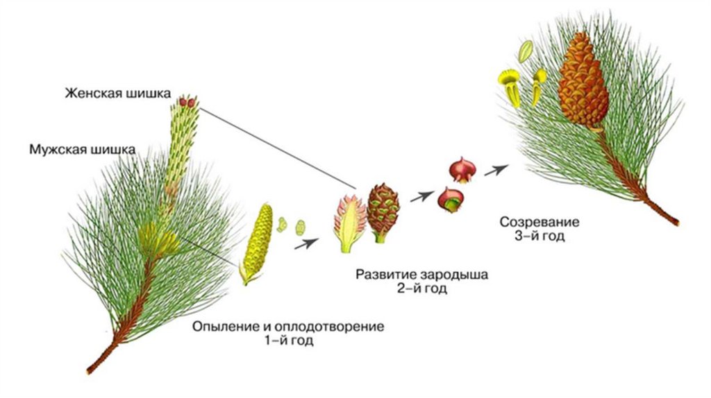 Оплодотворение —слияние половых клеток; у голосеменных происходит без участия воды.