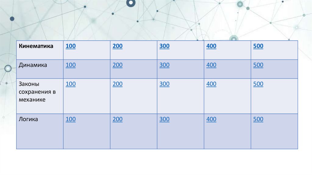 1. Своя игра «Механика»