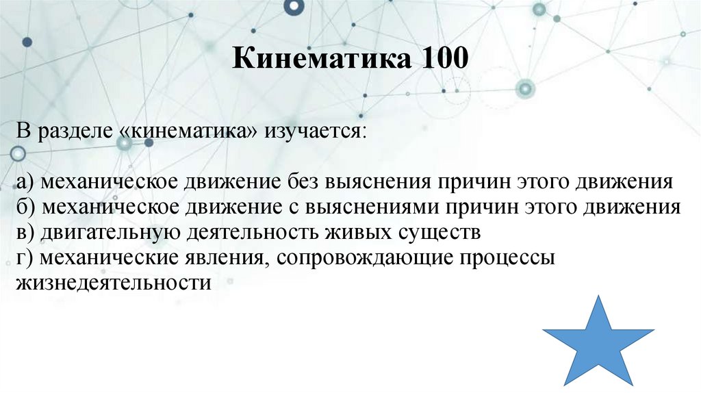 В разделе «кинематика» изучается:а) механическое движение без выяснения причин этого движения