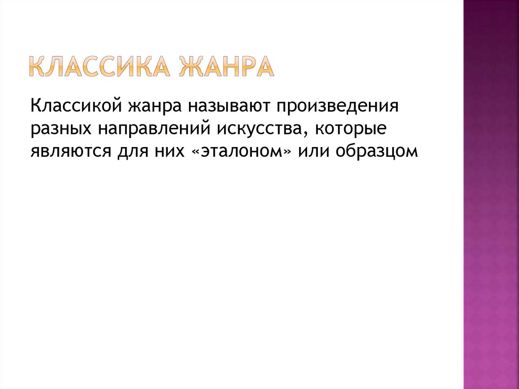 Классикой жанра называют произведенияразных направлений искусства, которые