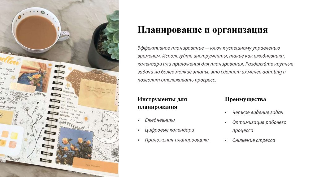 временем. Используйте инструменты, такие как ежедневники,