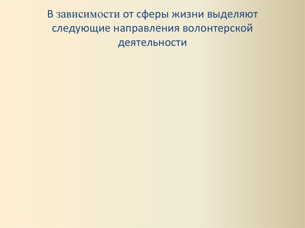 В зависимости от сферы жизни выделяютследующие направления волонтерской