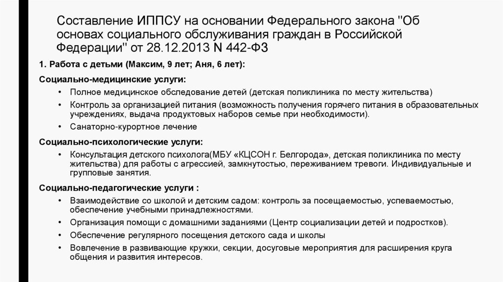 3. Составление ИППСУ на основании Федерального закона "Об основах социального обслуживания граждан в Российской Федерации" от